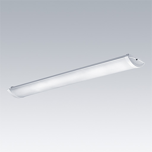 Slim Surface mounted LED luminaire. Electronic, DALI dimmable control gear. Class I electrical, IP44. Body: pre-coated steel. End caps: white plastic. Diffuser: frosted acrylic. Keyhole fixing positions Ø14mm for direct mounting to ceiling, wall or brackets. Fixing centres: 1100mm. Two cable entries Ø19mm in the rear of the body and knockouts in the endcaps. Grommets included. Electrical connection via (3 + 2) x 2 x 2.5mm² piano key terminal block.. Complete with 3000K LED