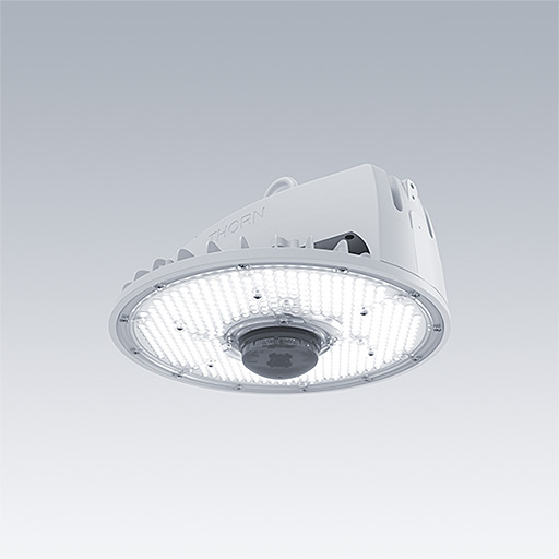 An IP65 single point suspension LED high bay luminaire with wide beam optic. Electronic, DALI-2 dimmable , for 220-240V, 50/60Hz supply. Class I electrical. IK08. Housing: aluminium. Lens/Diffuser: polycarbonate. Supplied with mounting hook. Equipped with 5 pole Quick Con¬nect socket. Wireless controlled via App with Bluetooth® >4.x - basicDIM Wireless Complete with 4000K LED.