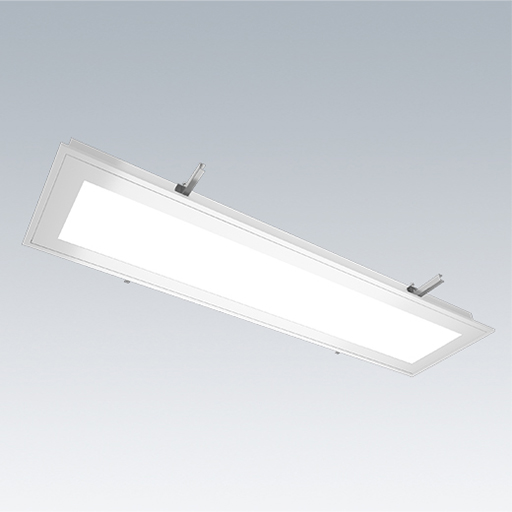 Normal purity ceiling recessed LED luminaire. Bottom access. Electronic, DALI dimmable control gear. Class I electrical. IP44 Impact strength: IK08. Body: welded steel, white painted. Cover: PC for chemical resistance in clean rooms. Slot-in frame design. Operating ambient temperature: -20°C to +40°C. Glare controlled by a micro-prismatic optic, UGR<19. Compliant with Cyanosis observation lighting requirements COI<3.3. Colour Rendering Index min.: 90. Suitable for use in clean rooms. Complete with 4000K LED and 5-core Flex&Plug. A suction cup is needed to access the luminaire and has to be ordered separately (art. 20935455).