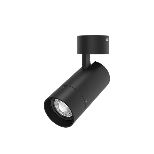 An LED spotlight with the built in ability to adjust its zoom from a spot distribution to a wide flood distribution.Class I electrical, IP20. A die-cast aluminium body and ceiling mounted cable enclosure in a matte black. The Sirio spot surface mounted version maintains its ability to rotate through 350° and tilted up to 90°. Colour rendering Ra >90 and changeable vario colour temperature switch allowing the CCT choice of 3000K, 4000K and 5500K.