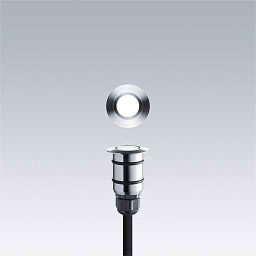 Cesar Dot Inground a floor recessed, LED luminaire for decorative facade lighting, wide beam distribution. Class III electrical. Remote DALI2 driver. , IP67, Impact strength: IK08. Housing: . Working ambient temperature: -20°C to +40°C. Complete with 2700K LED.