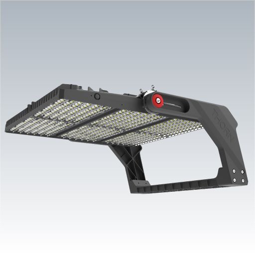 A high powered LED floodlight with AS2 asymmetrical light distribution from 468LEDs. External DALI-2 control gear 240-415V, to be ordered separately. Class I electrical, IP66, IK08. Heatsink and bracket: die-cast aluminium powder coated silver grey (RAL 9007), suitable for coastal installation. Cover: PC lens. Bracket mounted using fixation points available (one M20 screw or two M14 screws), suitable for over and under-slinging. A single 7 core cable is required for the connection between floodlight and control gear. Ideal for sports fields and area lighting. Complete with 5700K LED with Colour Rendering Index min.: 70.