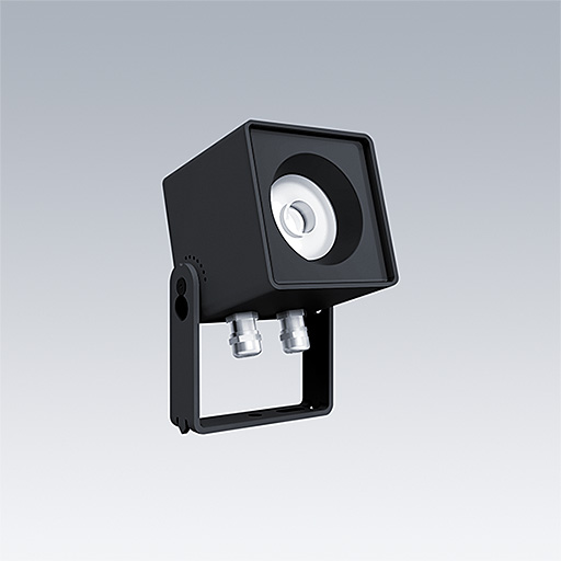 Caelon S adjustable surface mounted spotlights for the illumination of architectural facades, feature details, niches and structures. Class I electrical, IP66 with. Remote driver to be ordered separately. Body: die-cast aluminium in black. Stainless steel screws. ambient temperature: -20°C to +25°C. Complete with 2700K LED.