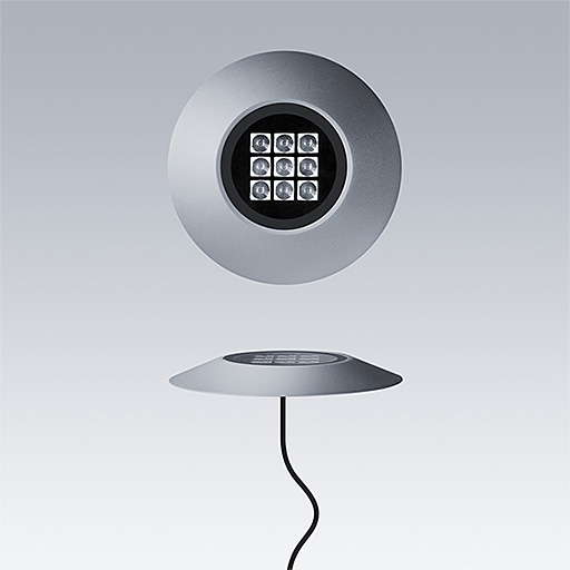 Cesar Bow a surface mounted, LED luminaire for decorative facade lighting, asymmetrical distribution. Class III electrical. Remote DALI2 driver. IP67, Impact strength: IK09. Housing: die-cast aluminium, powder coated textured grey. Working ambient temperature: -20°C to +40°C. Complete with 4000K LED.