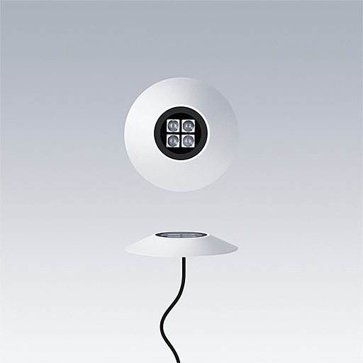 Cesar Bow a surface mounted, LED luminaire for decorative facade lighting, narrow beam distribution. Class III electrical. Remote DALI2 driver. IP67, Impact strength: IK07. Housing: die-cast aluminium, powder coated textured white. Working ambient temperature: -20°C to +40°C. Complete with 2700K LED.