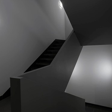 On the ground floor are the main entrance hall, lobbies, conference area, company restaurant and a large exhibition area. The main entrance hall has been illuminated by integrating the luminaires into the architectural structure in order to better accompany the forms and enhance the materials used.