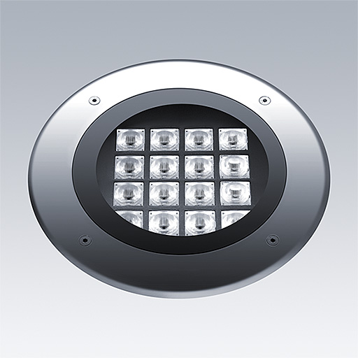 Cesar Opera, drive over montage encastré dans le sol, luminaire à LED pour l'éclairage décoratif des façades, avec et distribution asymétrique.. gradable DALI-2 Driver. Classe électrique I, IP67, Résistance aux impacts : IK10. Boîtier : Moulage sous pression aluminium, sans peinture. Température de service de Température ambiante : -20°C à +45°C. Livré avec LED 4 000 K.