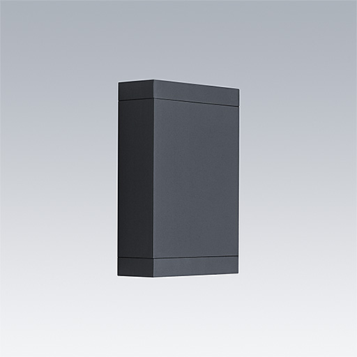 Axyl Glow fixation murale, luminaire architectural à LED pour l'éclairage décoratif des façades, avec 2 échancrures et distribution faisceau large. Classe électrique II.. Flux fixe Driver. IP65, Résistance aux impacts : IK06. Boîtier : aluminium Moulage sous pression, thermopoudré texturé anthracite. Température de service de Température ambiante : -20°C à +40°C. Livré avec LED 2 700 K..