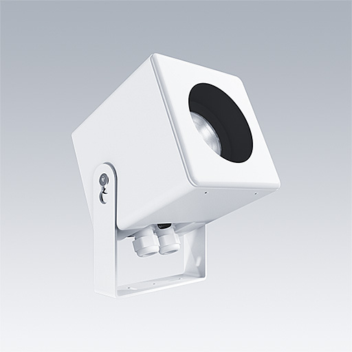 Projecteurs orientables apparents Caelon S pour l'éclairage de façades architecturales, de détails, de niches et de structures. Classe électrique I, IP66 avec. Équipés du convertisseur Contrôle sans fil Bluetooth®. Corps : Moulage sous pression aluminium blanc. Vis en acier inoxydable. Température ambiante : -20°C à +25°C. Équipé de LED RGBW avec changement de couleur.