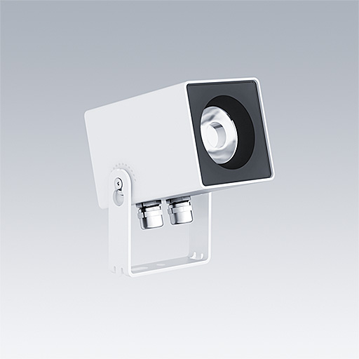 Projecteurs orientables apparents Caelon S pour l'éclairage de façades architecturales, de détails, de niches et de structures. Classe électrique I, IP66 avec. Équipés du convertisseur Sortie fixe. Corps : aluminium Moulage sous pression blanc. Vis en acier inoxydable. Température ambiante : -20°C à +25°C. Livré avec LED 2 700 K.