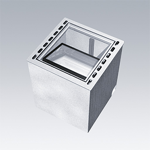 Boîtier encastré au sol avec accès à l’écoulement, et rails permettant la fixation d’un projecteur et des réglages positionnels/angulaires. Capacité de charge élevée et installation facile pour une grande longévité. Circulation pédestre uniquement. Boîtier : Ciment fibreux anti-pourriture, cadre et vis : acier inoxydable, verre : trempé. IK09.