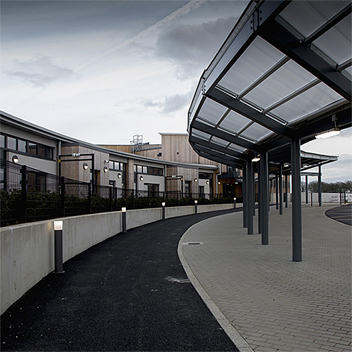 Borne LED intemporelle. Electronique, non gradable. Classe électrique II, IP65. Tête et corps : aluminium thermopoudré gris 900. Diffuseur : Polycarbonate (PC) anti-UV semi-opale. Montage sur semelle recevant 4 tiges de scellement. Équipé d'un connecteur. Livré avec LED 3 000 K