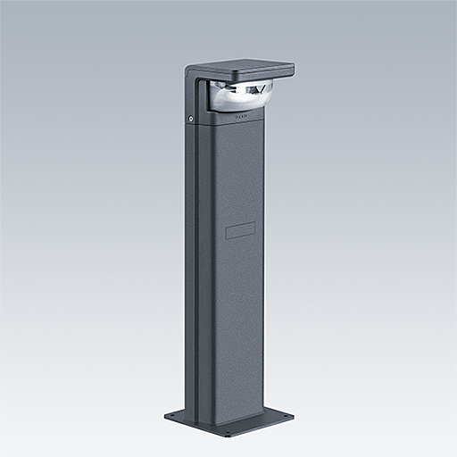 Borne LED sur semelle de 900 mm de haut, incorporant la technologie Flat beam® de Thorn. 1 LED alimentée en 350mA. Driver inclus. Classe électrique I, IP66, IK10. Corps : Moulage sous pression aluminium (EN44300, compatible avec l'installation en bord de mer), thermopoudré, texturé gris anthracite 900 sablé. Vasque : traitement anti-UV Polycarbonate (PC), semi-dépoli. Fixations : Acier inox. Configuré comme détecteur de mouvement maître avec capteur intégral dissimulé et commande par courant porteur. Fonction couloir ré-réglée 20 – 100 % pendant 5 minutes. Rayon de détection 5 m. Livré avec LED 3 000 K.