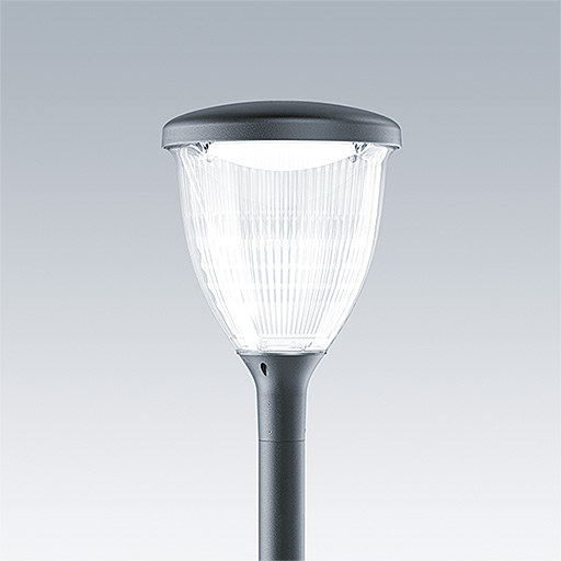 Lanterne intelligente LED, montage en top, avec une distribution Confort pour rue large. Programmable Driver alimentant 24 LED en 700mA. Classe électrique I, IP66, IK10. Chapeau et embase : aluminium résistant à la corrosion, Moulage sous pression thermopoudré, avec une finition gris anthracite 900 sablé texturé. Vasque : Polycarbonate (PC) traité anti-UV. Livré avec LED 4 000 K. Indice min. de rendu des couleurs: 70. Pré-câblé avec 5 m de câble. Montage top sur mât de Ø 60mm.