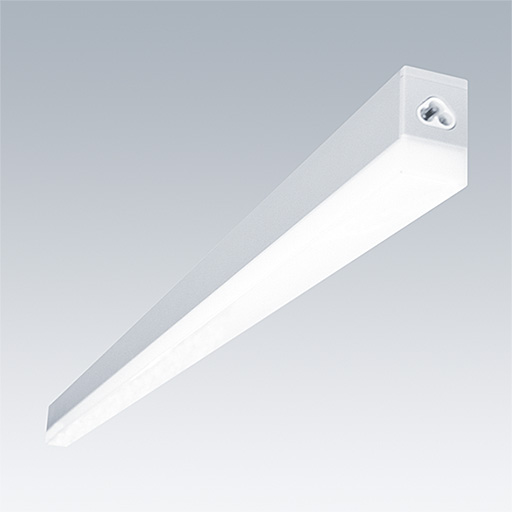 Réglette LED pour Monté en plafonnier. Electronique, non gradable. Classe électrique I. IP20, IK06. Corps : aluminium extrudé avec finition anodisé. Diffuseur : Polycarbonate (PC) opale. Embout : Polycarbonate (PC) injecté. Possibilité d'installation en continu. Raccordement électrique via la connexion en extrémité (SD). Livré avec LED 4 000 K