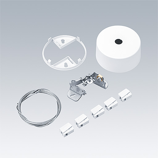 Cache-piton pour connexion électrique d’une longueur de luminaire suspendu IQ Wave. Couvercle : Polycarbonate (PC) blanc (similaire à RAL9016).