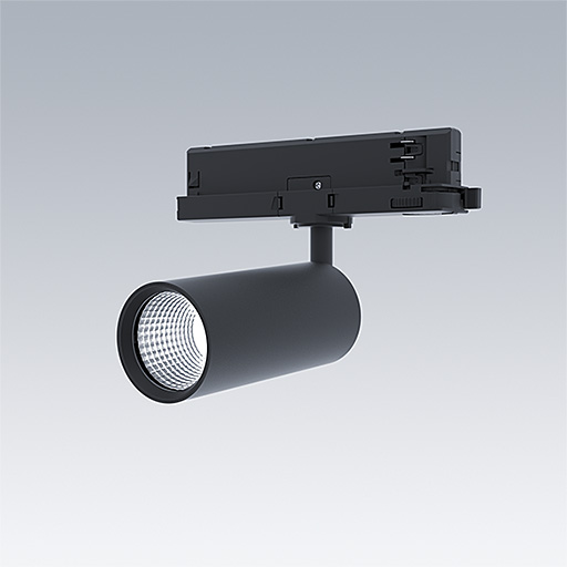 Projecteur LED pour installation sur rail triphasé avec distribution lumineuse de type projection large et température de couleur stabilisée. Electronique, non gradable. Classe électrique II, IP20. Corps : aluminium Moulage sous pression, peinture microtexturée noir. Réflecteur : PC poudré. Projecteur orientable sur le plan horizontal de 360° et inclinable sur le plan vertical de 90°. Livré avec LED 3 000 K